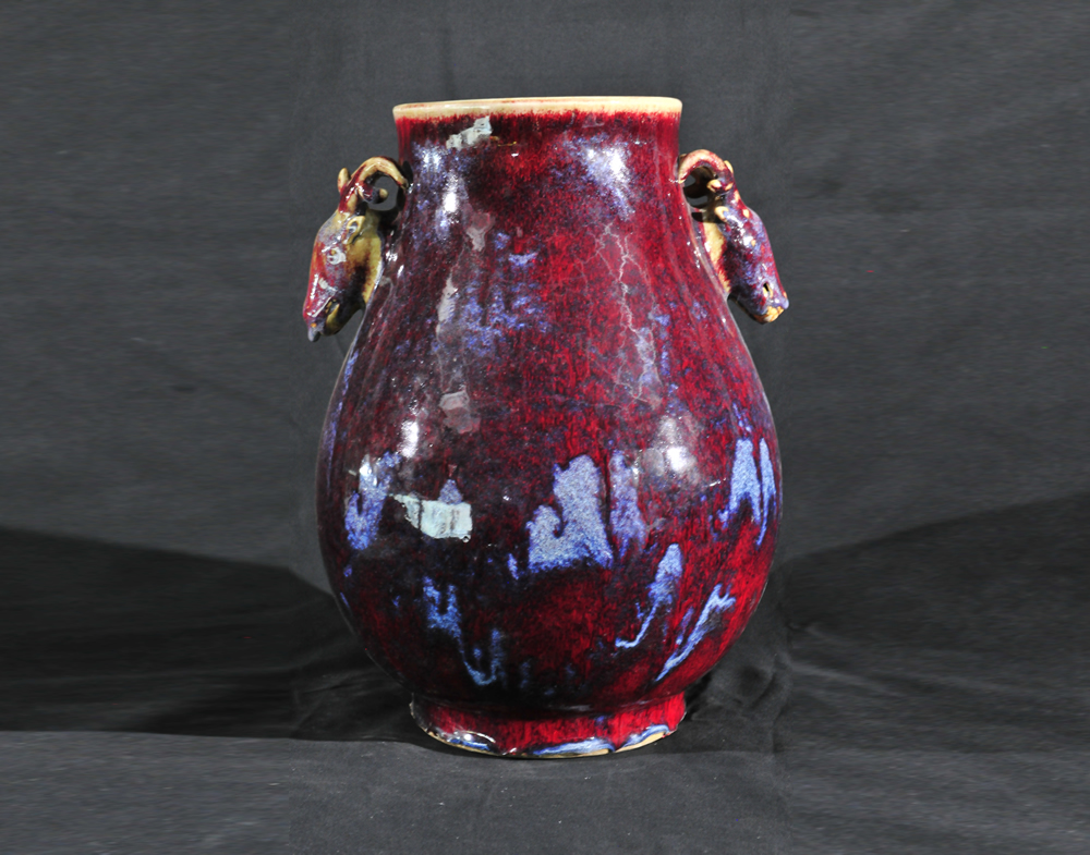 宋钧窑双耳鹿头尊