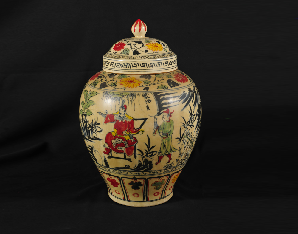宋明道四彩人物故事将军罐