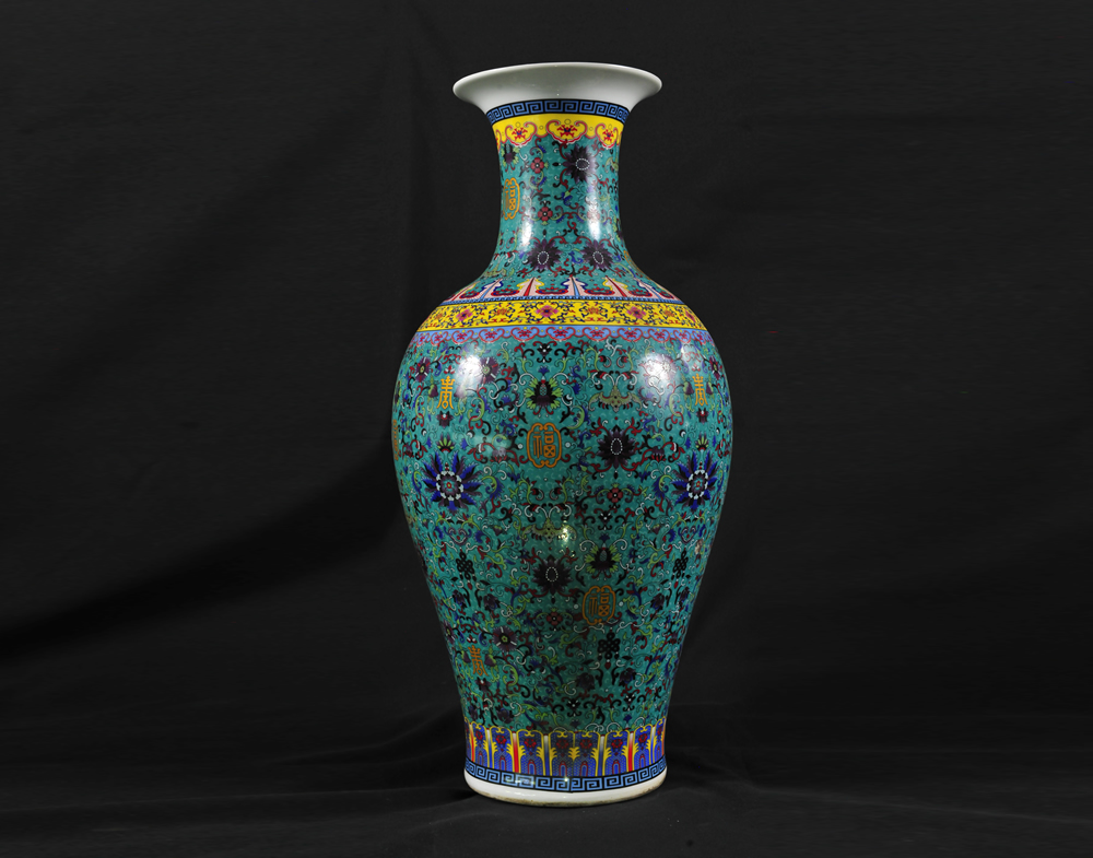 乾隆蓝地粉彩瓶