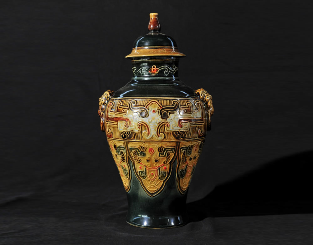 清·乾隆·刻花狮耳罐