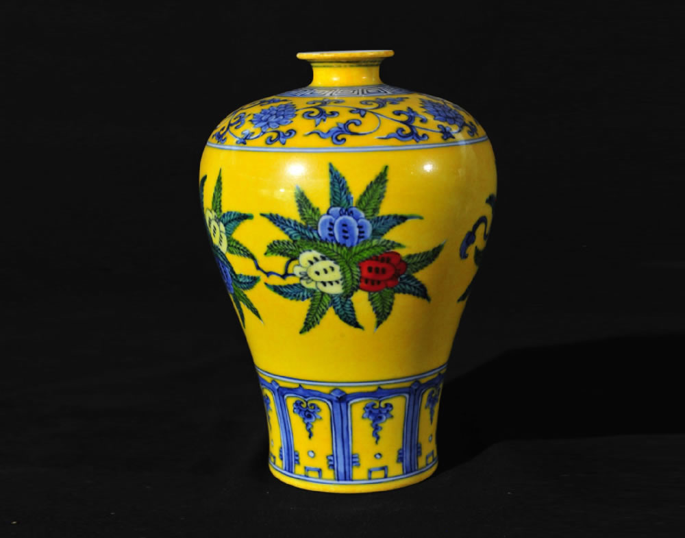 清·雍正·黄地五彩小梅瓶