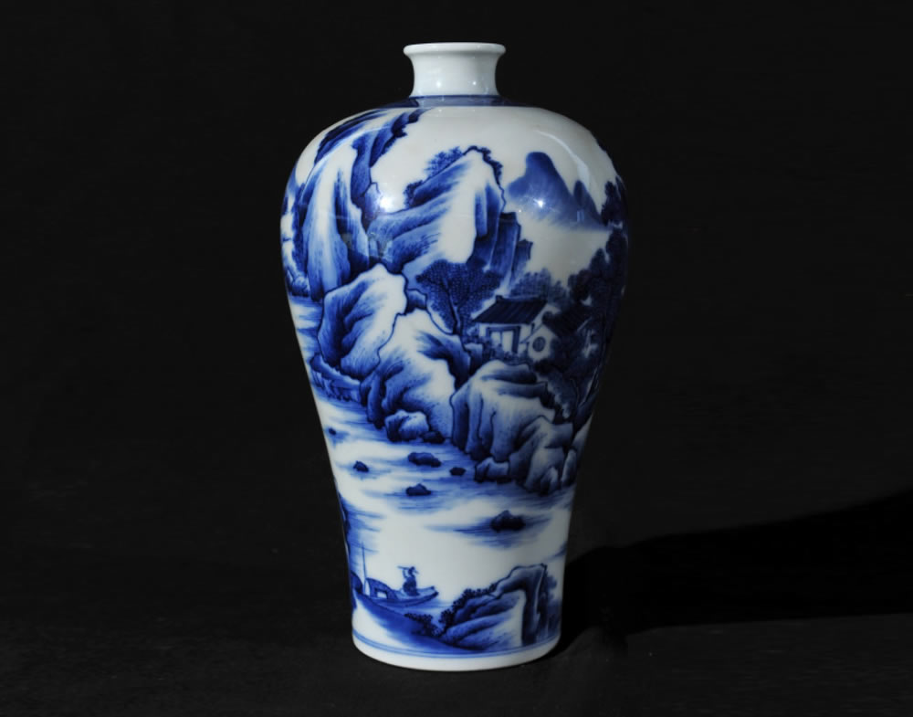 清·雍正·青花山水梅瓶