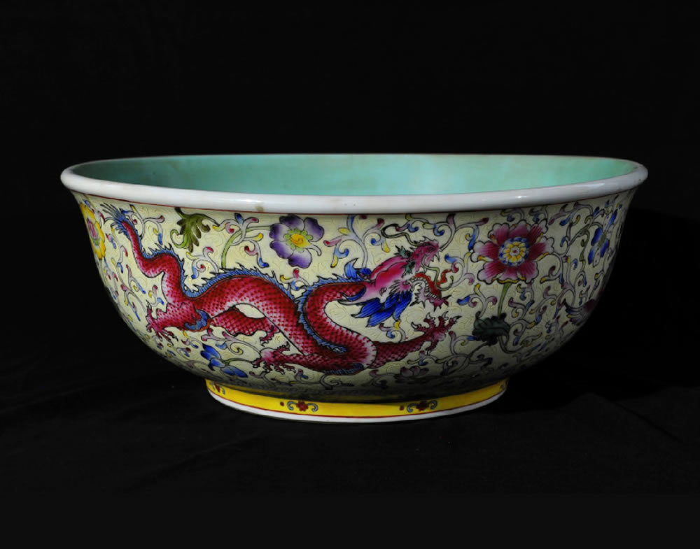 清·乾隆·粉彩龙凤纹大盆