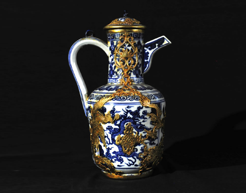 明·宣德·青花贴金龙纹壶