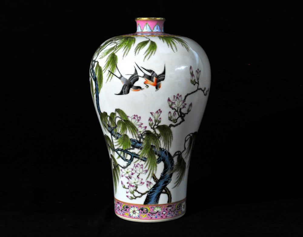 清·雍正·珐琅彩杏林春燕梅瓶