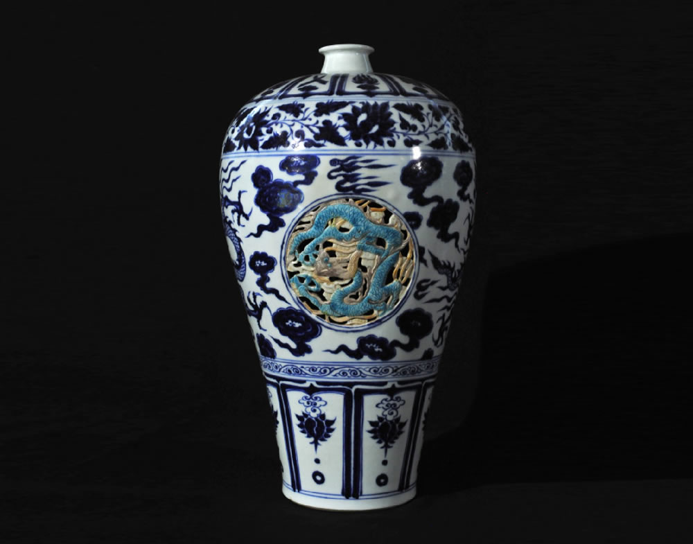 元·青花镂空龙纹梅瓶