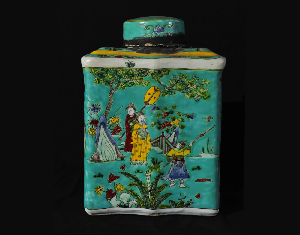 清·康熙·绿地五彩人物故事罐