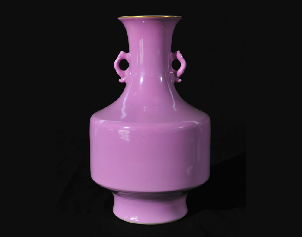 清·雍正·胭脂红釉双耳瓶