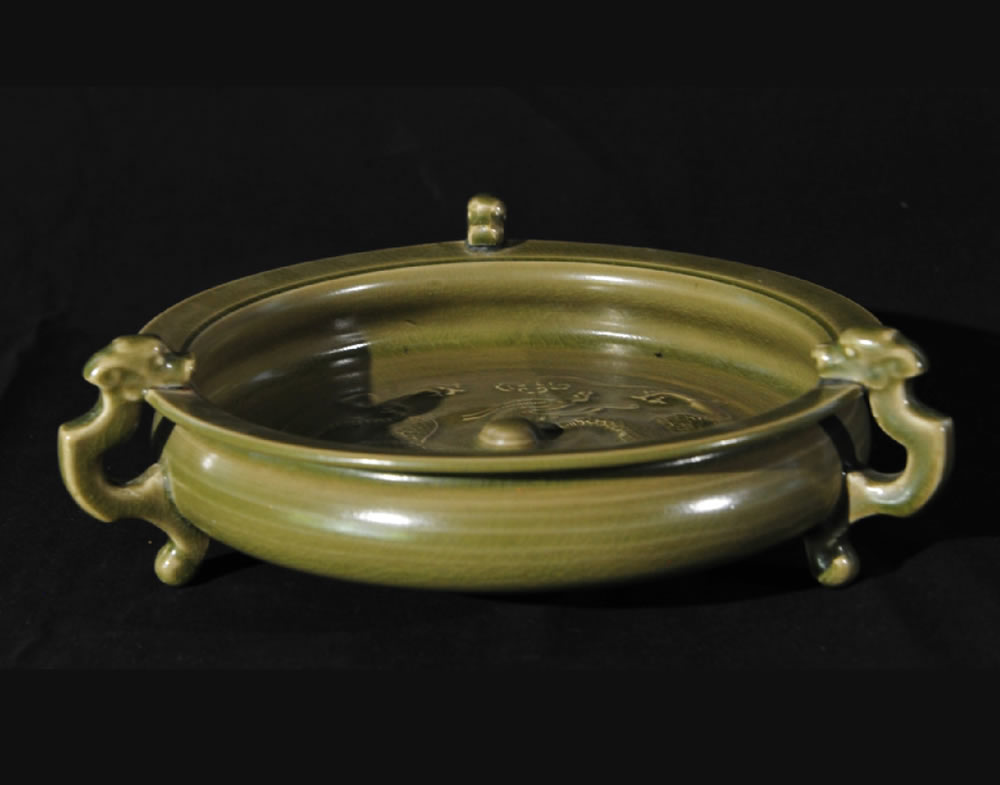 唐·越窑青瓷三足雕刻龙纹洗