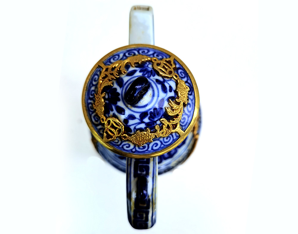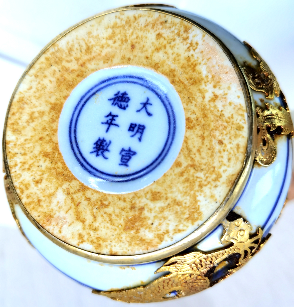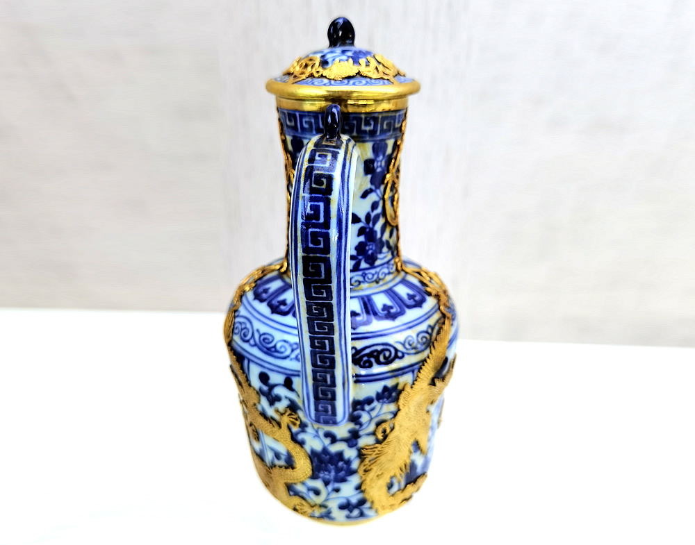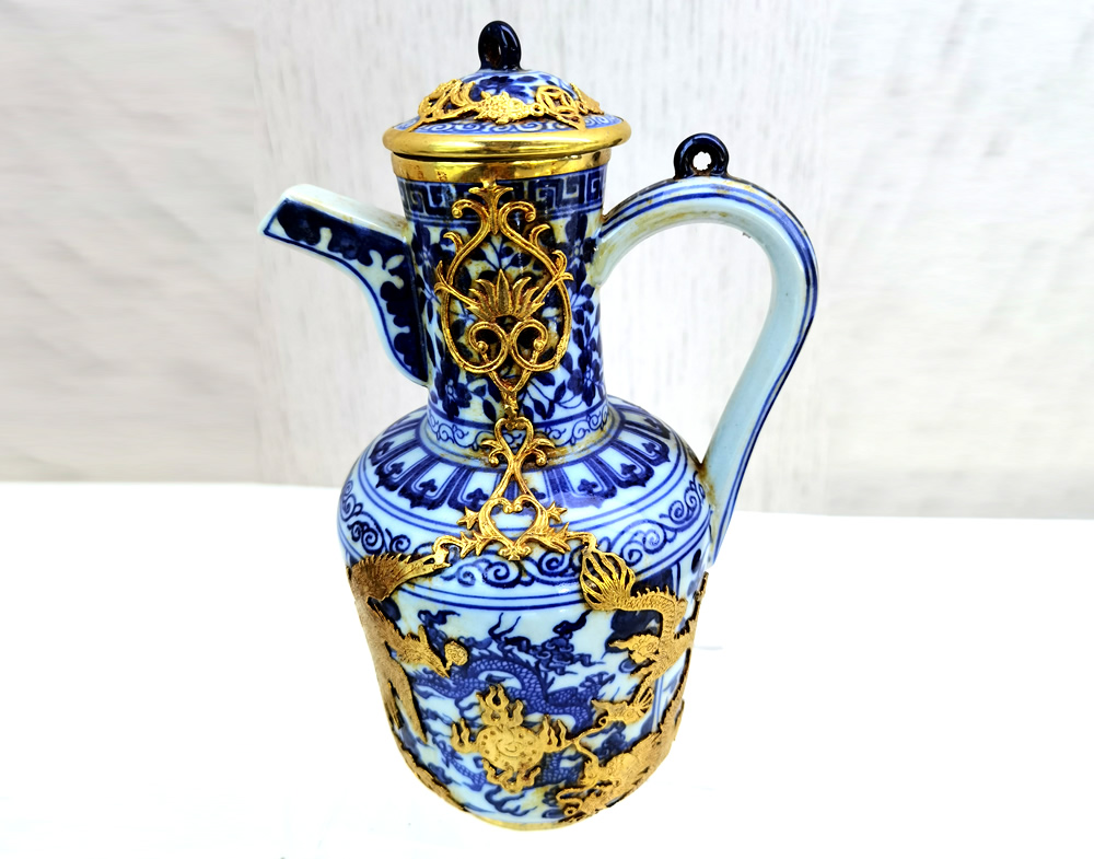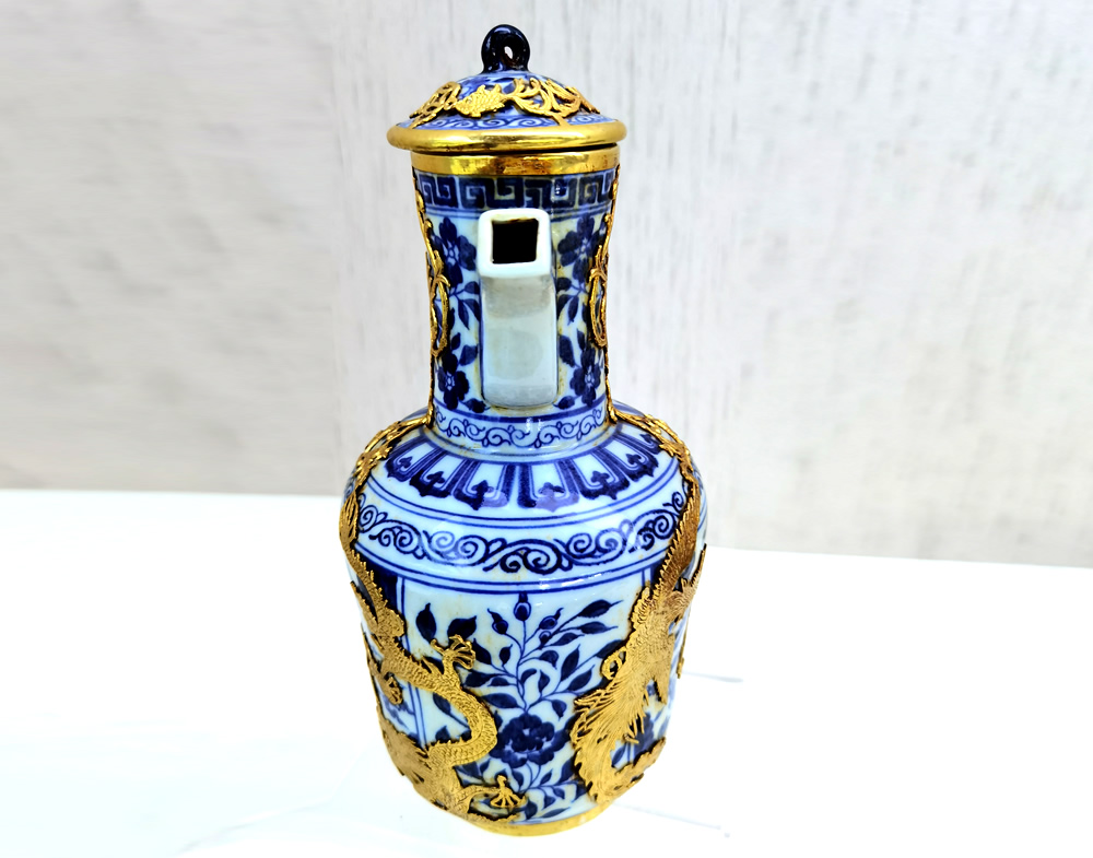 宣德款青花龙纹镶金银壶