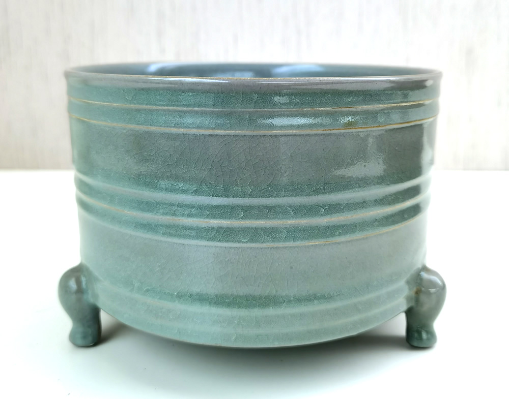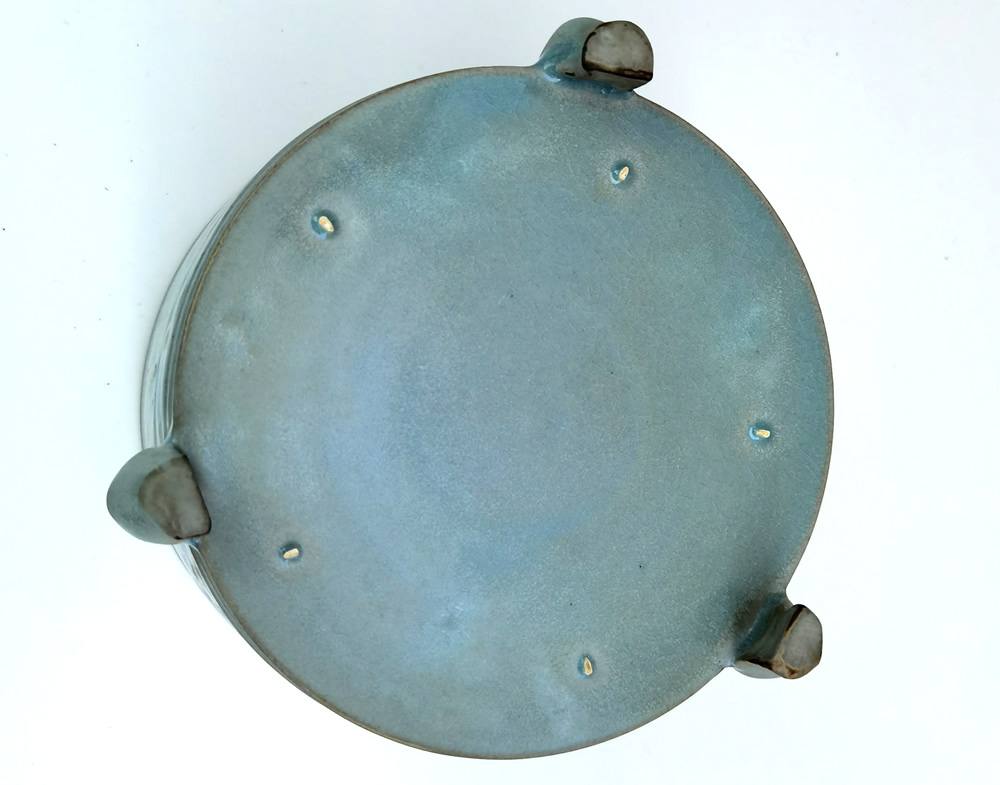 宋汝窑刻花天青釉三足洗