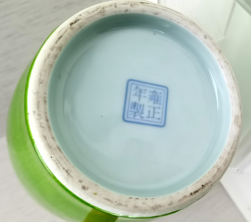 清、雍正款苹果绿鱼籽纹瓷瓶