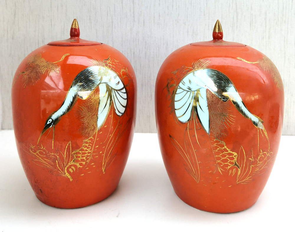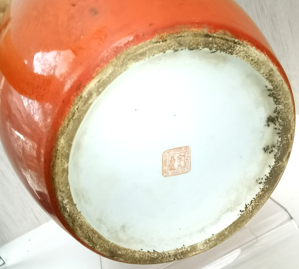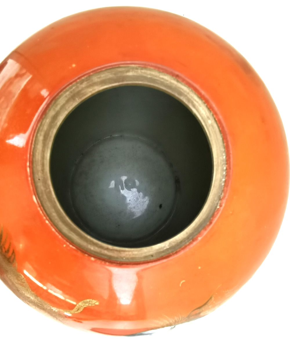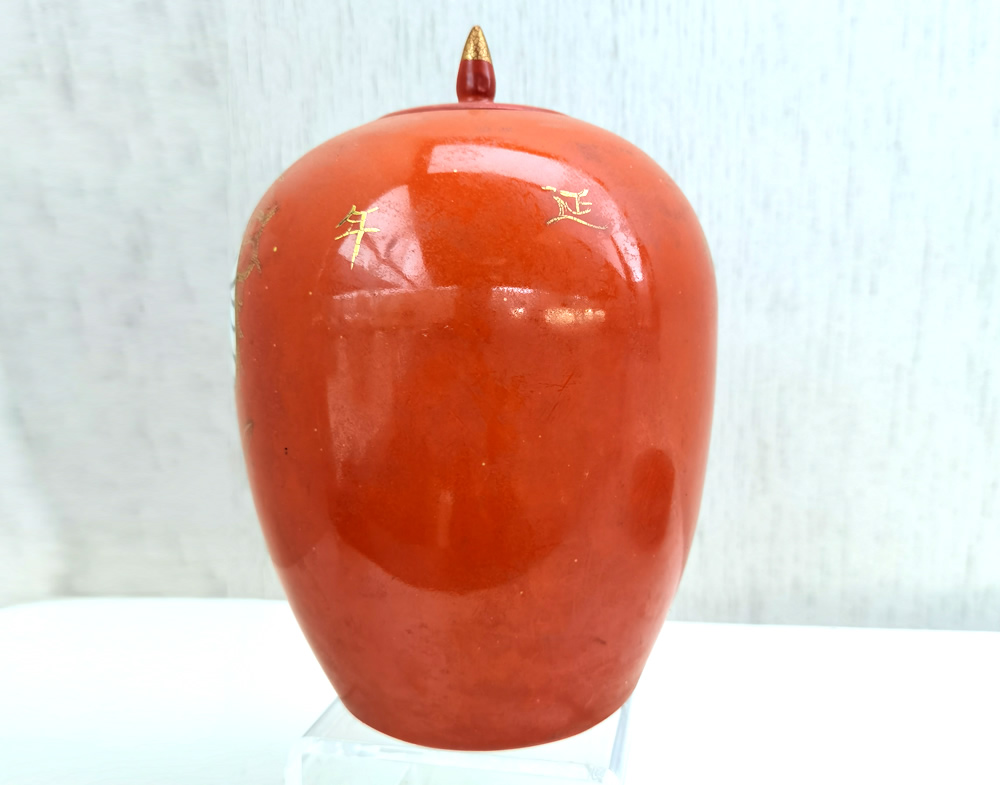 民国余元昌描金红釉灯笼瓶