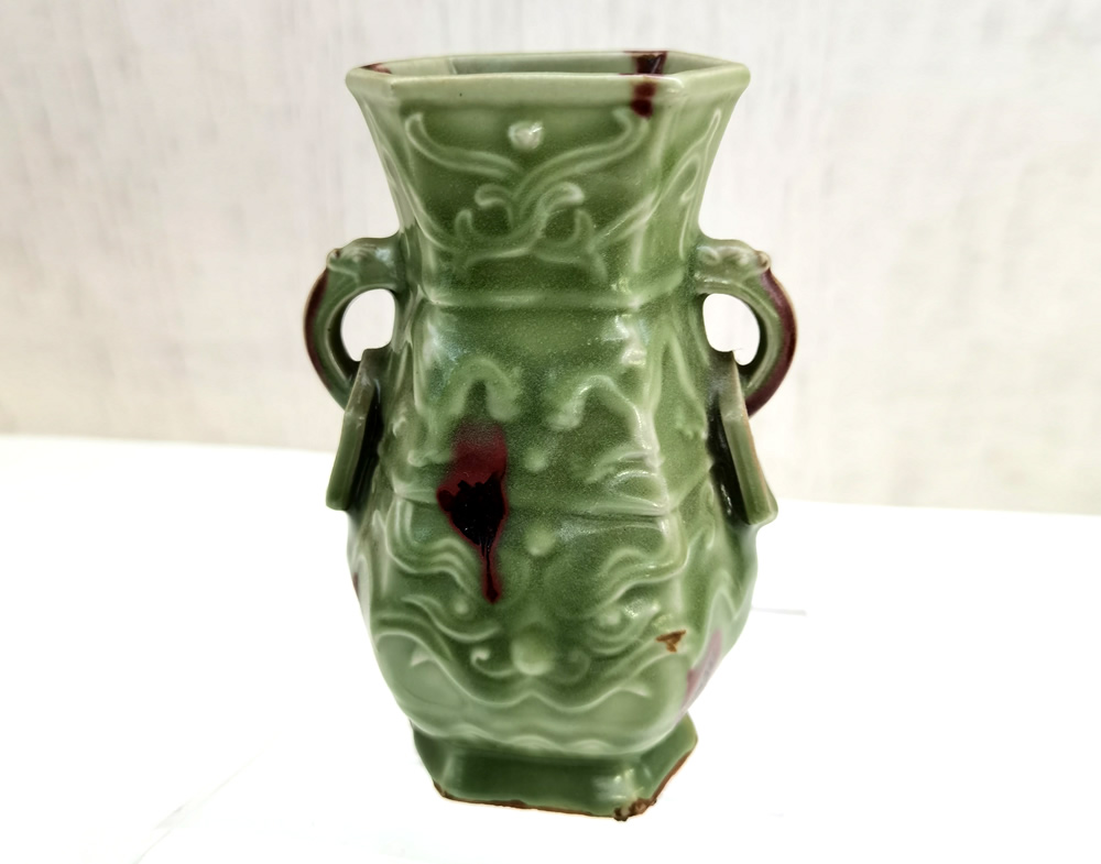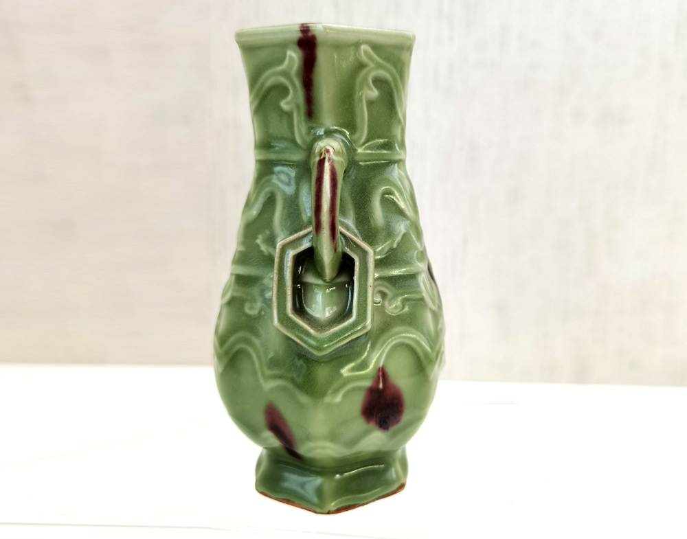 龙泉窑刻花双耳瓶