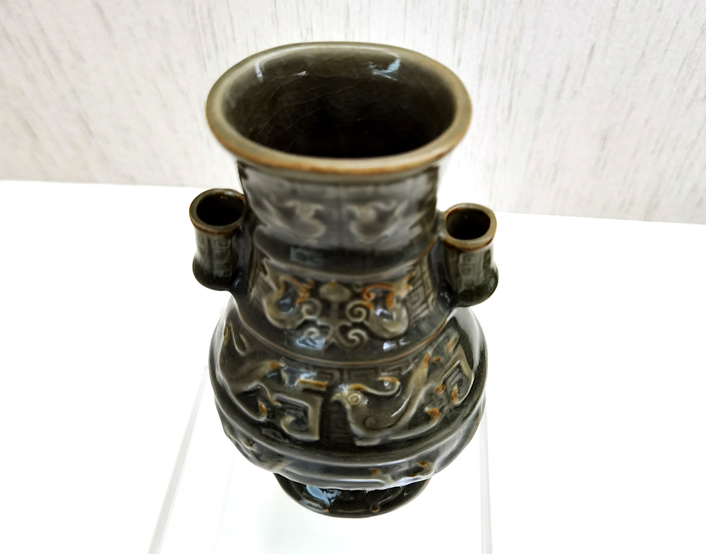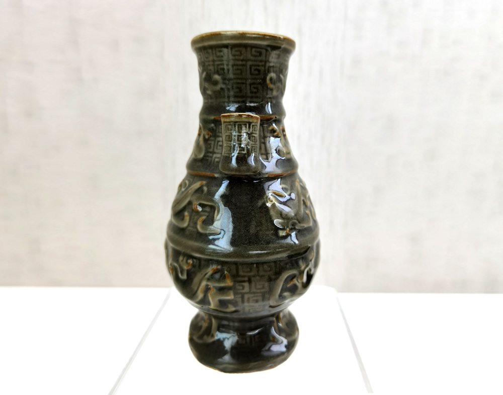 龙泉青瓷刻花双耳瓶