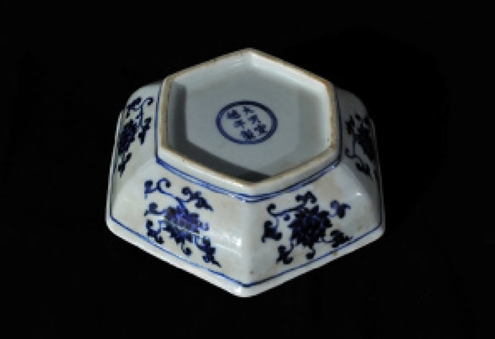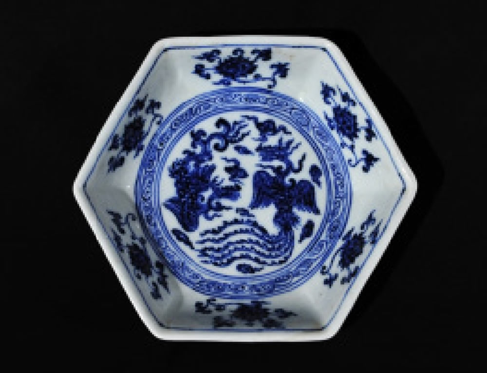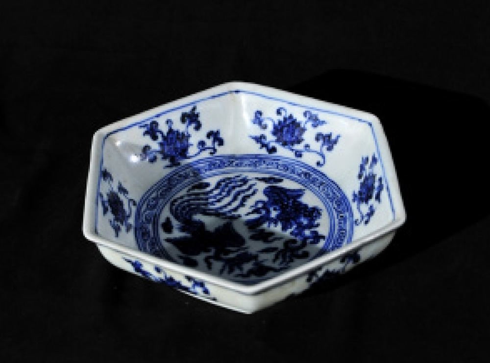 明•宣德•青花六方魁纹洗
