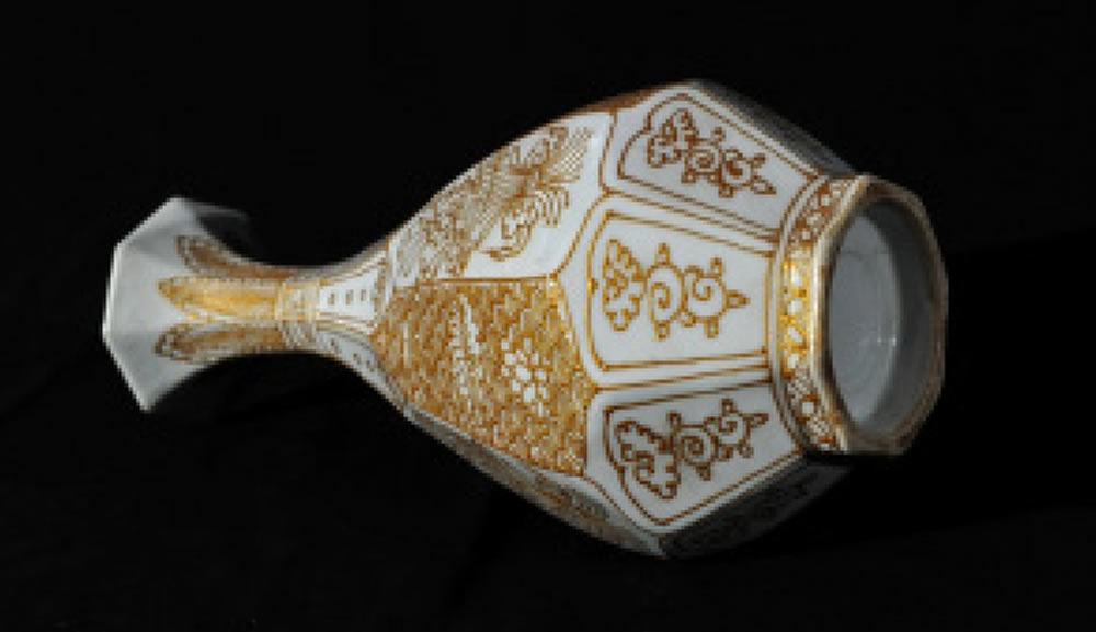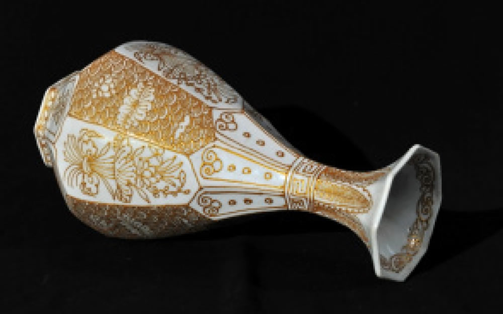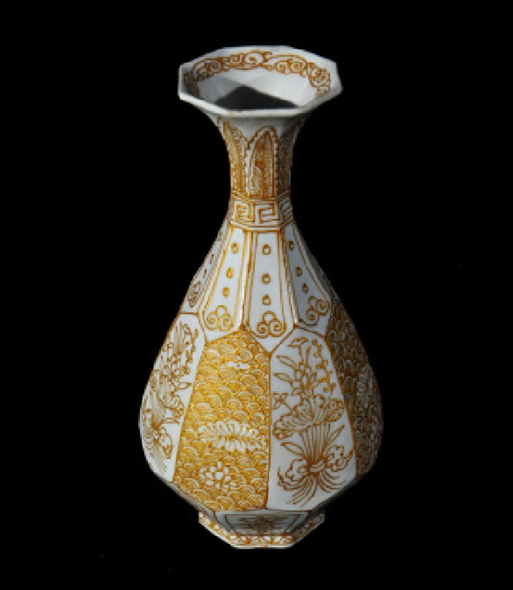 明·宣德·堆粉贴金八方玉壶春瓶