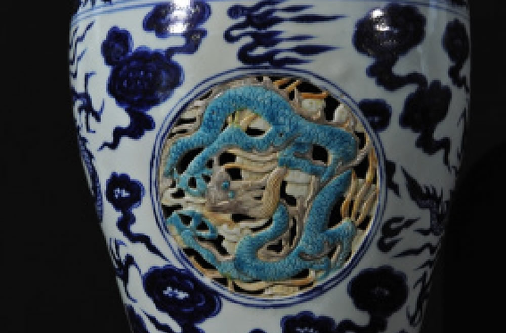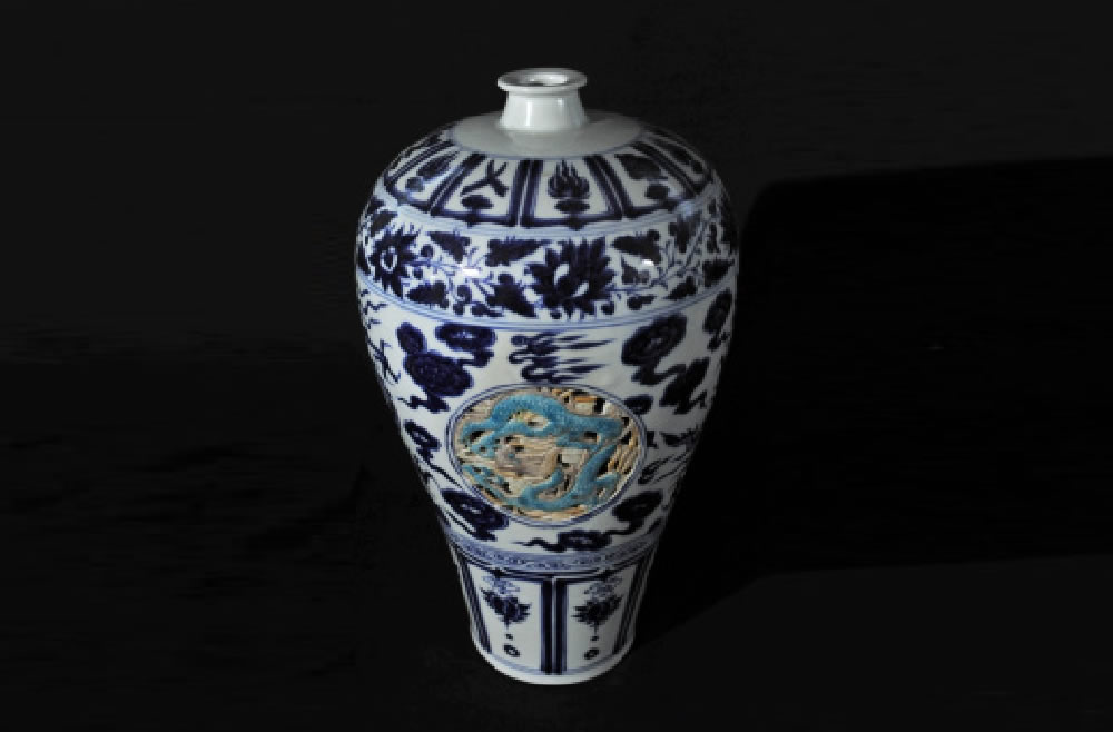 元·青花镂空龙纹梅瓶