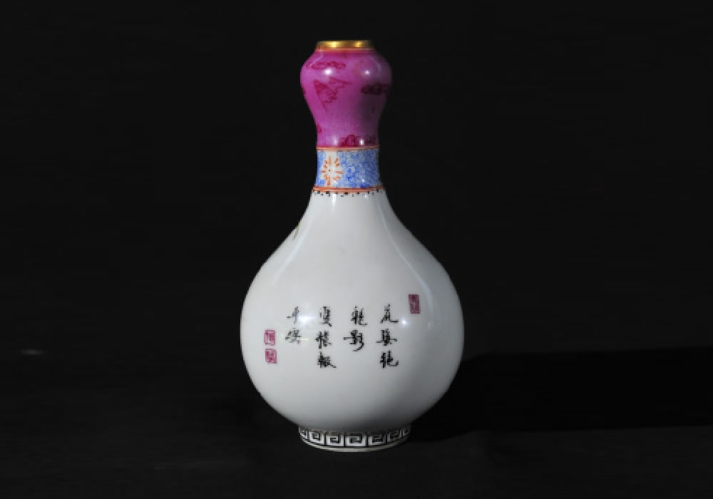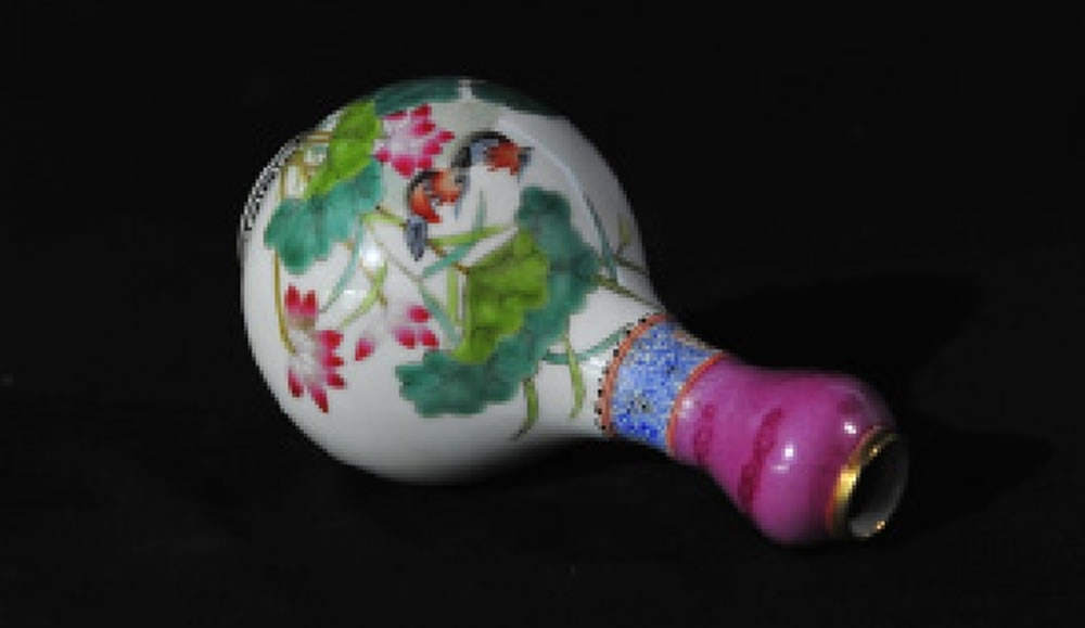 清·雍正·粉彩鎏金鸳鸯蒜头瓶