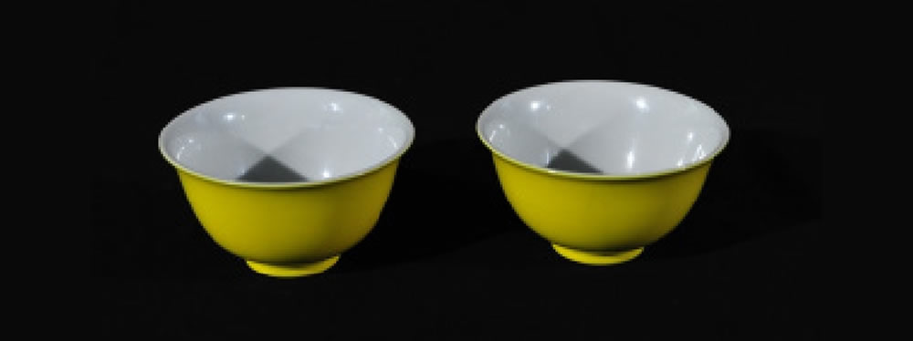 清·雍正·柠檬黄釉对杯