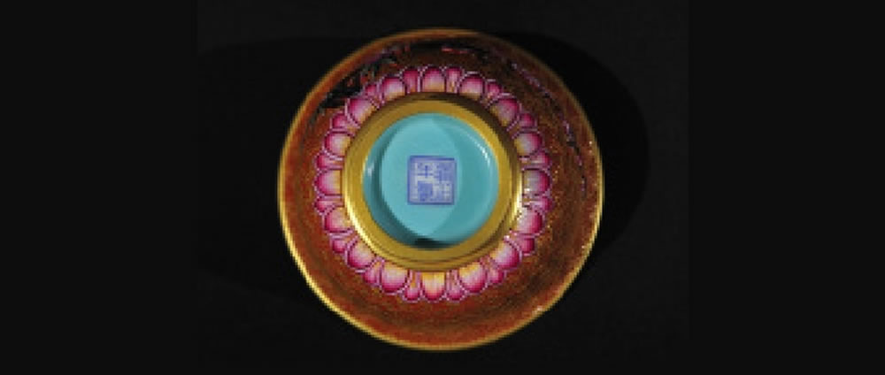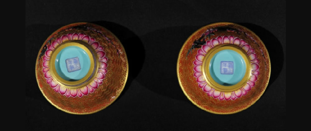 清·雍正·珐琅彩鎏金刻花梅花对杯