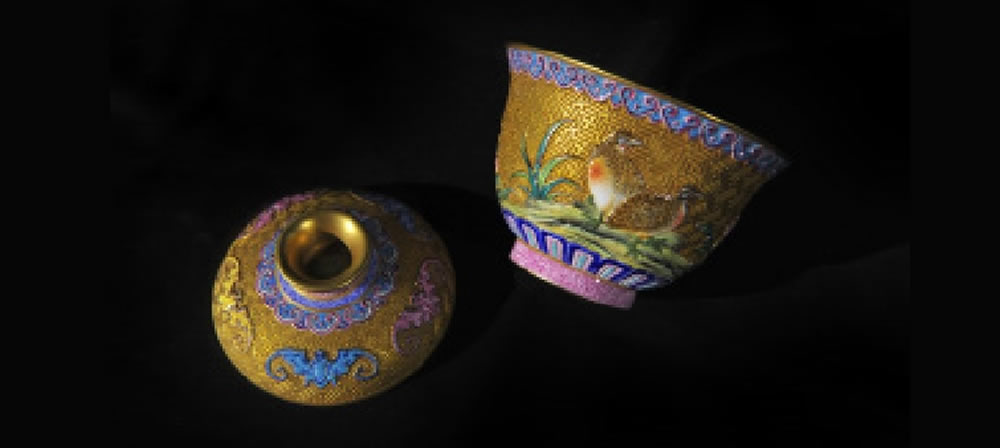 清·雍正·珐琅彩鎏金暗刻安居乐盖杯