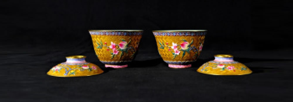 清·乾隆·珐琅彩暗刻寿桃盖杯