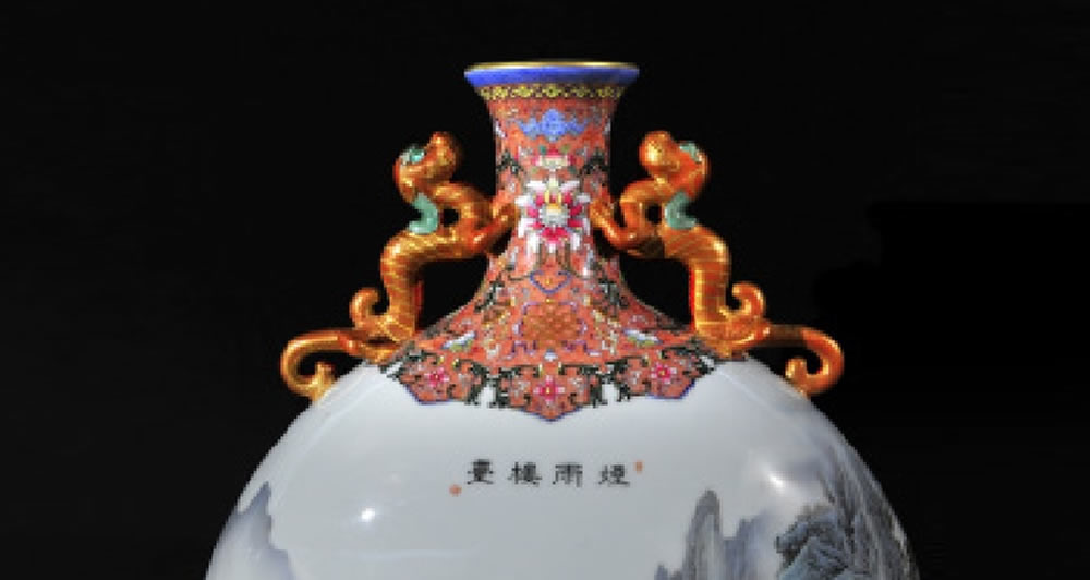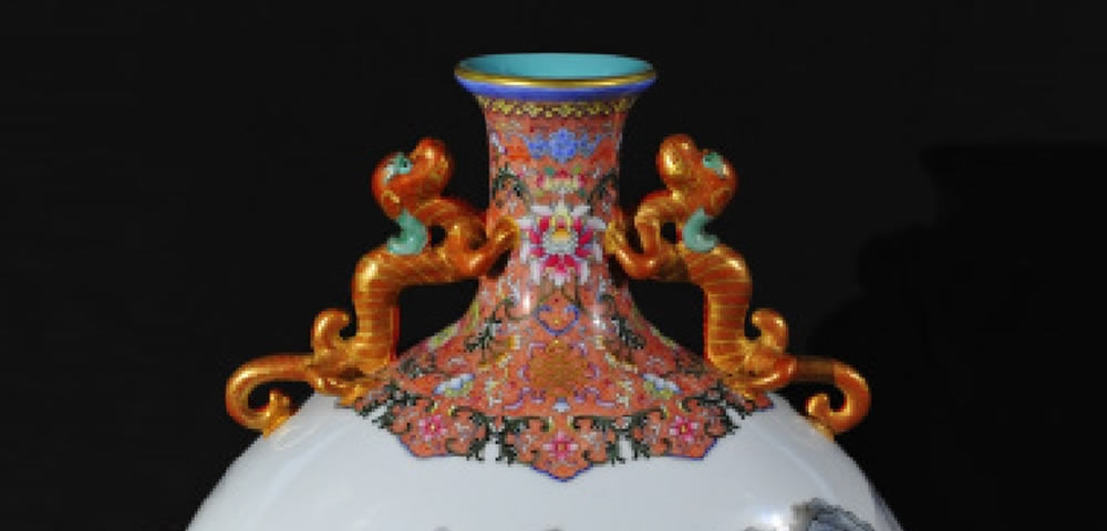 清· 乾隆·珐琅彩双龙耳抱月瓶
