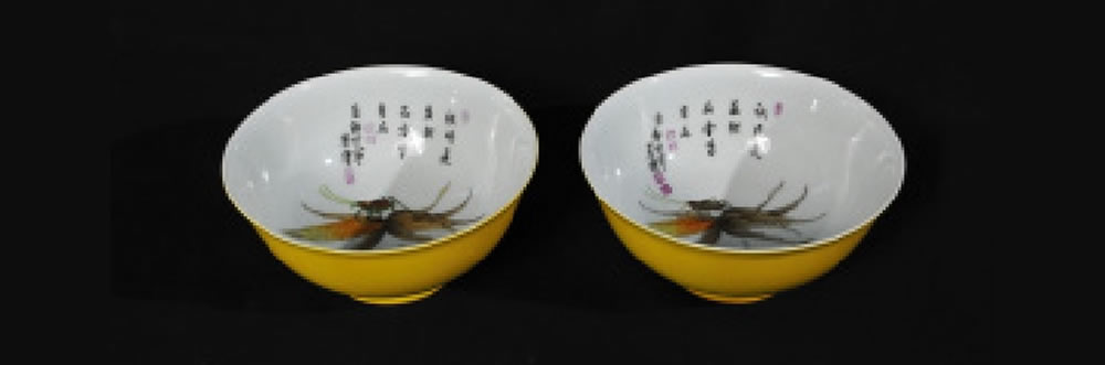 清·雍正·珐琅彩黄釉对碗